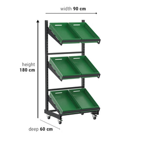 Single Sided Mobile Fruit and Vegetable Display Unit Product Description Our vegetable and fruit display units are for indoor and outdoor use. The unit provides high visibility of your products...