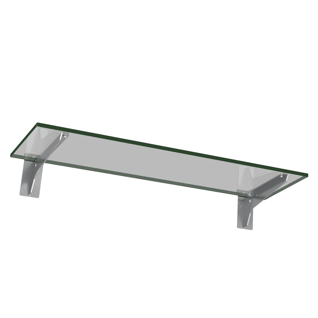 Slatwall Glass Shelf with Brackets Product Description Dynamic Shelf Slatwall Glass Shelf is a simple and minimalist wall shelf consisting of a clear glass shelf and two stainless steel brackets....